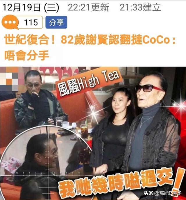 12月19日晚上,港媒突然爆出82岁谢贤与33岁女友CoCo复合的消息。