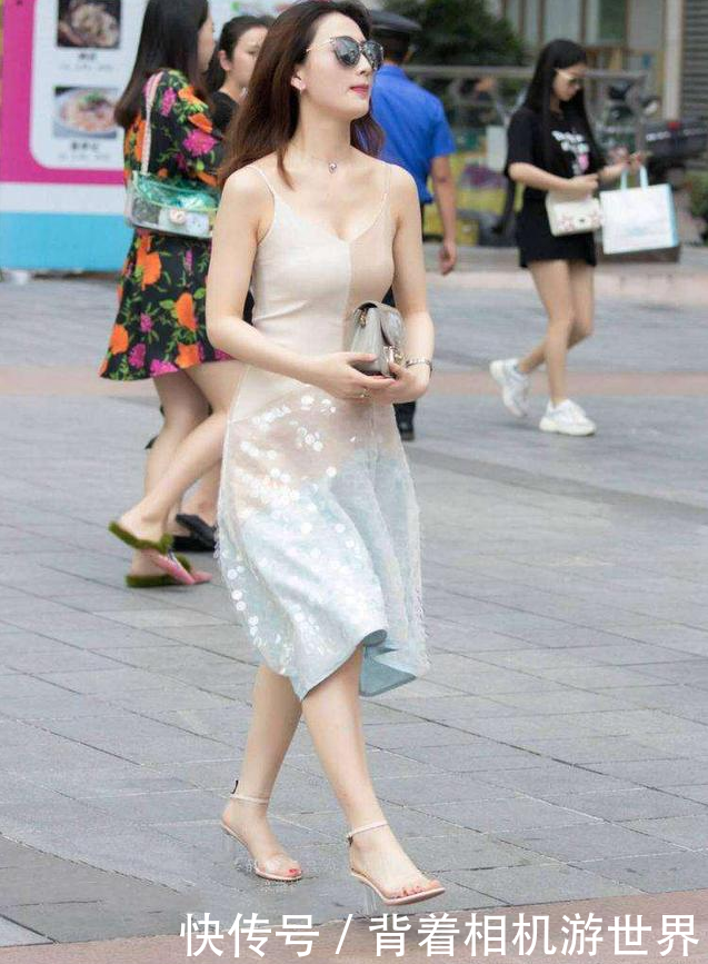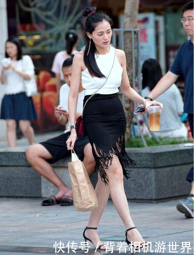 街拍:小姐姐露肩上衣搭配流苏包臀裙,时尚性感有气质