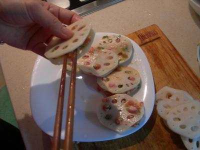 复炸时请注意(升高油温复炸会变的更脆,油温过低时会造成藕夹吸油过多而影响口感)