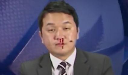 6日,一名任职于韩国《SPOTV》进行播报的体育解说主播赵贤日(音译)在播报NBA赛事时被发现一边流着鼻血一边解说。